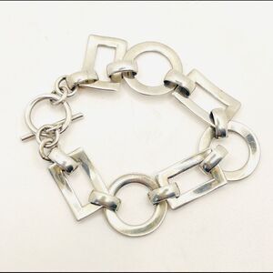 VINTAGE STERLING SILVER Circle and Rectangle Geometric Link Bracelet