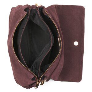 VIOLA CASTELLANI Made In Italy Suede Large Flap Over Shoulder Bag With Chain