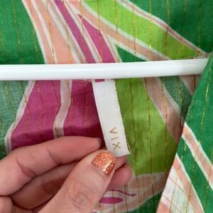Some have this listed as coverup and some as a top so can go either way.  No size tag but I’m a small/medium and it fits like a medium. See measurements: