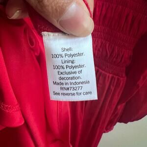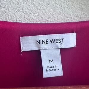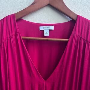 V-Neck Flowing Satin Red Mini Dress Long Sleeve Nine West Women's Size Medium