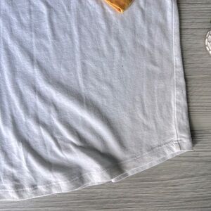 Victoria’s Secret PINK Pittsburgh Pirates baseball tee shirt. Colors include gold, white, and black. White bodice, gold sleeves. Horiztonal stripes of black and gold on front chest. Black sequin Pirates P on from left chest. Black screen printed Raise the Jolly Roger text on back. Womens size medium. Faint stain on front, shown in photos.