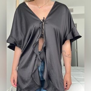 Gorgeous Victoria’s Secret satin tie front kimono! Black with single front tie and ruffle design :) one size