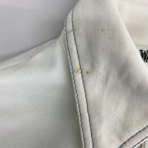 Vintage item is in good used condition. Stains on the front and back center and left collar of jacket