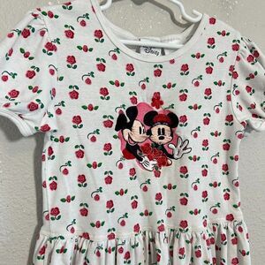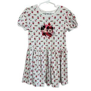 VTG 90s Disney Store Mickey Minnie Dress Girls 6 Floral White Cotton Stretch