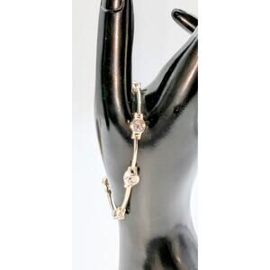 VTG 925 Sterling Silver Bezel Set CZ Bar Link Tennis 7" Slide In W/ Safety Clasp Bracelet. Pre-owned, this bracelet is in excellent condition.