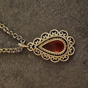 VTG Avon 1973 Granada Double Chain Victorian Crystal Teardrop Pendant Necklace