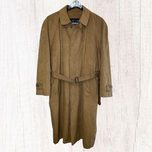 VINTAGE BILL BLASS BLACK LABEL MEN’S FAUX SUEDE BELTED TRENCH COAT WITH ZIP-IN QUILTED REMOVABLE LINING