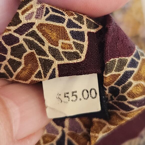 VTG. Burberrys of London Maroon Medallion Silk Classic Men's Hand Sewn Tie