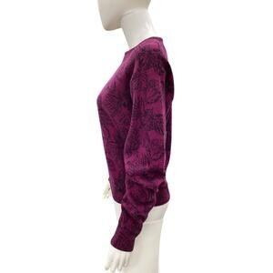 VTG Christian Dior Sweater Women SZ M Crew Neck Leaf Motif 96% Lambswool Purple