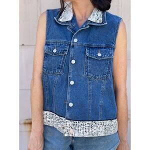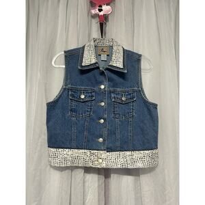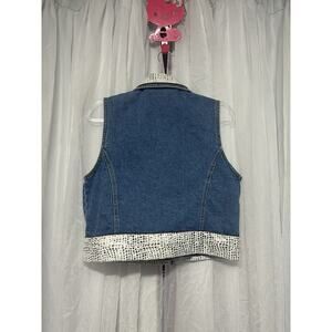 VTG Don’t Mess With Texas Denim Western Vest Country Chic Sz M Rodeo Snake Print