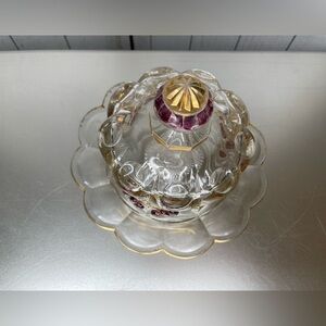 VTG EAPG Mosser Northwood Red Cherry Gold Glass Butter Cheese Dish Thumbprint