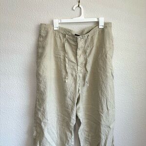 VTG Express Women's XL 100% Linen Pants Trouser Wide Leg Minimal Coastal Tan