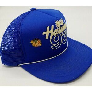 VTG "Hawaii 93" & Pearl Harbor Pin Trucker Hat Snapback Mesh Cap Blue 1993 OSFA