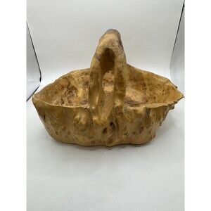 Beautiful Vintage VTG Large Hand Carved Wood Tree Burl Wooden Bowl Basket Handle Shan Mu Tree