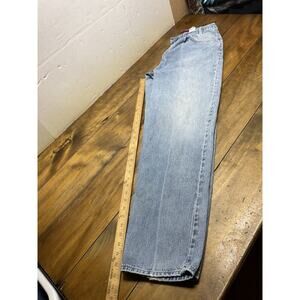 The VTG Levi's SilverTab Loose Jeans for men are a vintage piece with a faded wash, perfect for a grunge skater Y2K look. These jeans feature a button closure, mid-rise fit, and a 5-pocket design with a 34-inch inseam. Made of denim fabric and cotton material, these relaxed fit jeans come in a solid blue color with accents of the Levi's logo. Ideal for winter, fall, and spring seasons, these jeans offer comfort and style with a nod to hipster, biker, rock, and hip-hop themes, making them a versatile addition to any wardrobe.pre owned good condition distressed we ship fast measurements are in the pictures