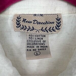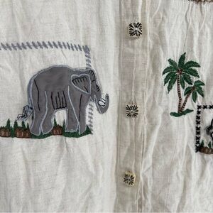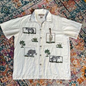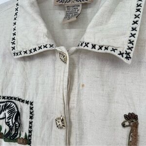 VTG New Directions Safari Print Embroidered Button Shirt Large Linen Cotton