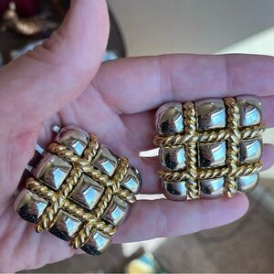 VTG Paquette Gold and Silver Tone Tic Tac Toe Square Interlocking Belt Buckle OS