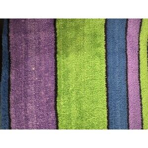 VTG Peqout Striped Towel 60s 70s USA Green Purple Blue Retro Fringe Mod Hippie