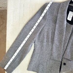 This is a BEAUTIFULLY made and classic black/white striped wool blazer.