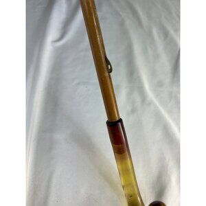 Vintage Schertz Paisley Umbrella W/ Amber Lucite Handle & Wooden Shaft
