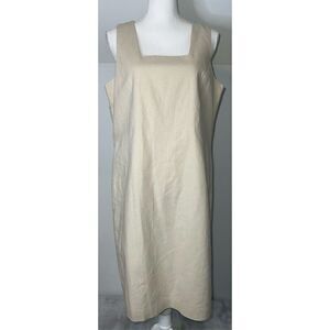 VTG Tan Beige Cream Square Neck MIDI Linen Dress 12P
