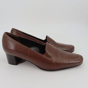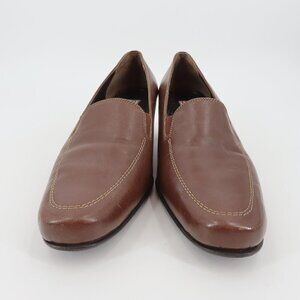 VTG Valleverde Womens 38.5 EUR 8.5 US Brown Leather Loafer Heels Made in Italy