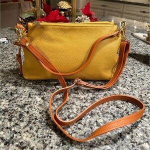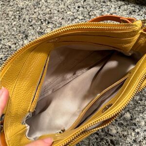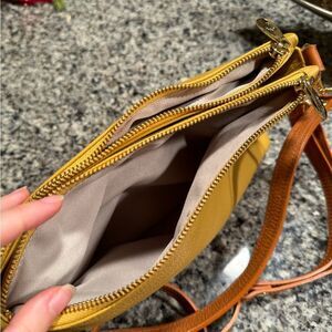 3 compartments: the middle one has a magnet closure and the two side ones have zippers
