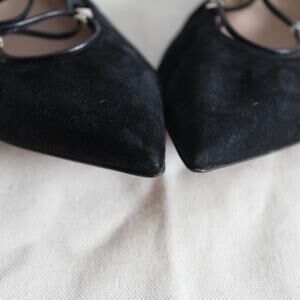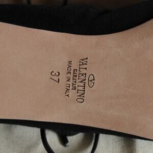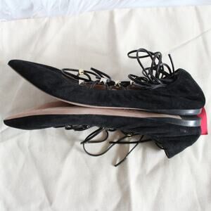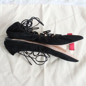 Valentino Black Suede Gold Rockstud Lace Up Ankle-Wrap Pointed Ballet Flat