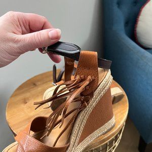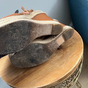 Fringed Leather Espadrille Wedge Sandals Brown Valentino Size 38.5 / 8 COA included