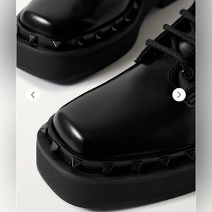 Valentino Garavani's take on classic combat boots is plenty cool. Made in Italy from sleek black glossed-leather, they're designed with squared toes and chunky rubber soles traced in gunmetal 'Rockstuds'. The side zippers ensure you don't have to fuss with the laces. Wear them with feminine dresses or cropped tailoring.