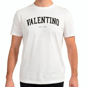Valentino Men's White 2V3MG13D964 Logo Print Crewneck Short Sleeve T-Shirt