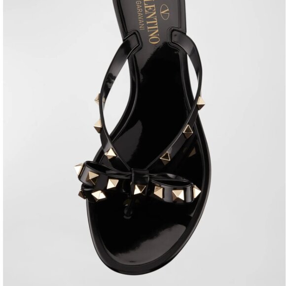 Valentino Rockstud Black PVC Flat Thong Sandals - Size: 9 | 39 EU