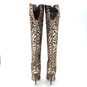Valentino Rockstud Over the Knee Leopard Print Cowhair Stiletto Boots 40