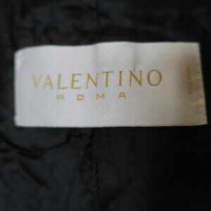 Valentino Roma Black Virgin Wool Blend Textured Blazer Front Tie Womens 50 14 US