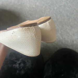 Valentino White Python Flats with gold trim and buckle, size 39.5, wear to sole, toe and heel pictured, please see photos