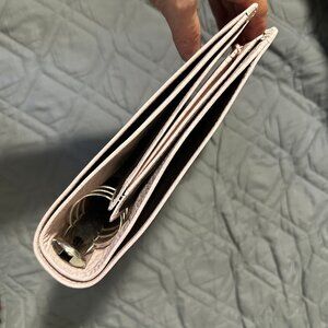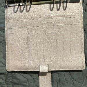 Right hand side: 6 horizontal credit card pockets | 1 bottom pocket | elasticated leather pen loop | secretarial flap.