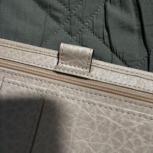 Left hand side: 1 full height gusseted zipper pocket | 1 full length slip pocket | 1 bottom pocket | secretarial flap.