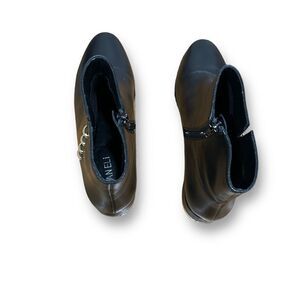 Vaneli Black Leather Ankle Boots with Gold Heel and Side Detail