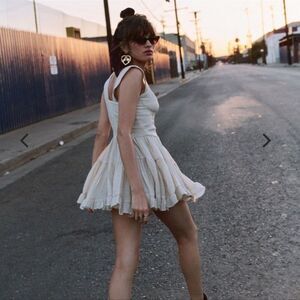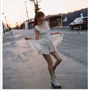 shoulder straps. Slimming waist. Real buttons in the front. Mini length. The bottom fit of the dress is like a