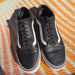 NEW no tags, Black leather Vans Old Skool trainers. Not your usual canvas vans, but rare leather. These are new but note that the "Vans Off the wall" marking is somewhat faded on the heel. Classic, these never go out of style! #skate #skater #classic