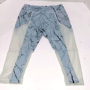 Varley Blue White Marble Print Leggings With Mesh Side Cutouts Cropped Size S