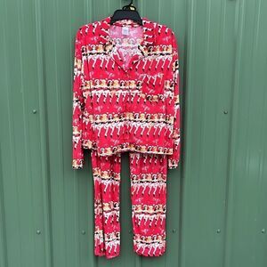 Velour Notch Collar Pajama Top & Pants Lounge Sleep 2-Piece Set Size L