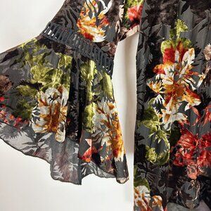Velvet Burnout Boho Gypsy Festival Fall Floral Fairy Blouse Size Large Women's
