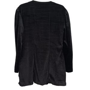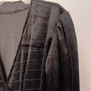 Velvet Jacket BLACK Blazer GOLD BUTTONS Deep V-neck Front Puff Shoulders Pockets.