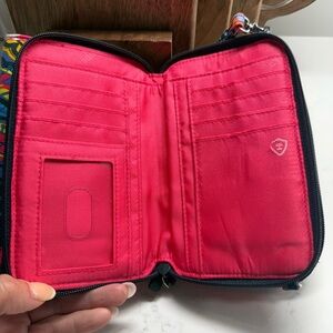 Discover the charm of Vera Bradley's quilted wallets, featuring a delightful blend of blue and yellow hues. These wallets are crafted with intricate paisley and floral patterns, offering a touch of bohemian elegance. Made from high-quality fabric, they ensure durability and style for your everyday essentials.