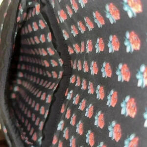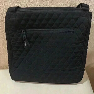 Outside magnetic flap. Outside zipper pocket. Preowned. Approximately 13 inches across by 12 inches deep.