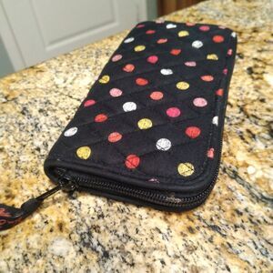 Vera Bradley Zip Around Wallet Havana Dots Floral Black Red/Pink