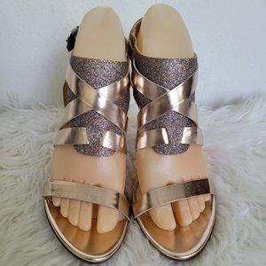 Vera Wang Lavender Line Garmin Sandal Leather Glitter Metallic Gold Heels US 7M