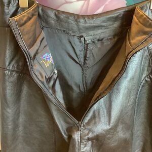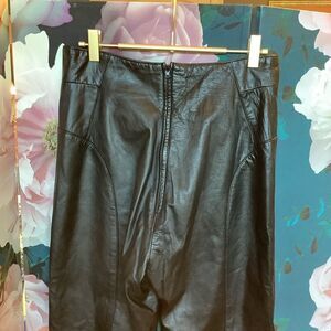 Buttery soft, leather pants in good condition. Zipper in back. Fully lined although lining is torn in front of pant-see pics. Size 12.