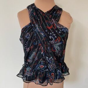 Veronica Beard Black Multi Silk Metallic Paisley Floral Halter Kailani Top NWT 6